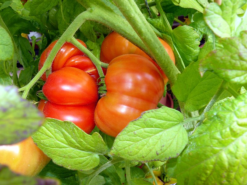Noch schöner auf dem Balkon ist die große Fleischtomate Reine de Sainte Marthe