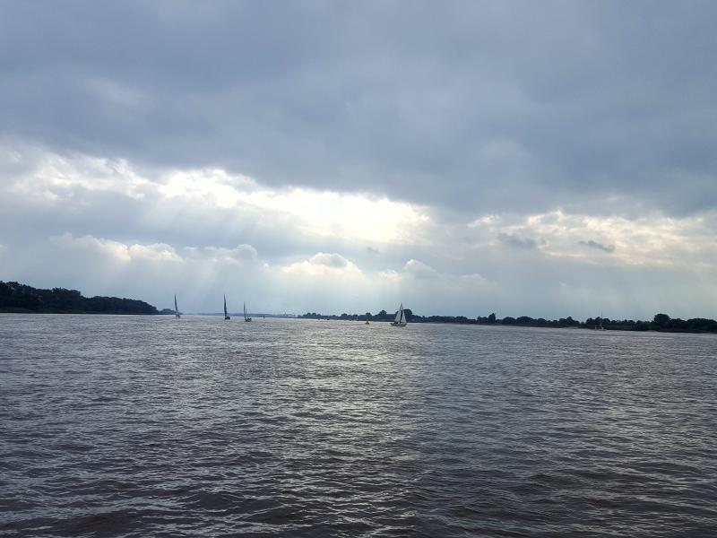 Spaziergang bzw Segeltörn vom letzten Sonntag, auf der Lesum und Weser, von Bremen Burg bis kurz vor Nordenham und zurück - hier am frühen Morgen kurz vorm Ablegen