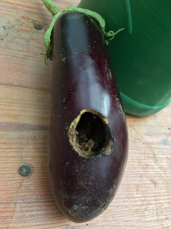 Ich hab auch (wieder) eine Aubergine mit großem Loch, es sind definitiv Schnecken >:(.