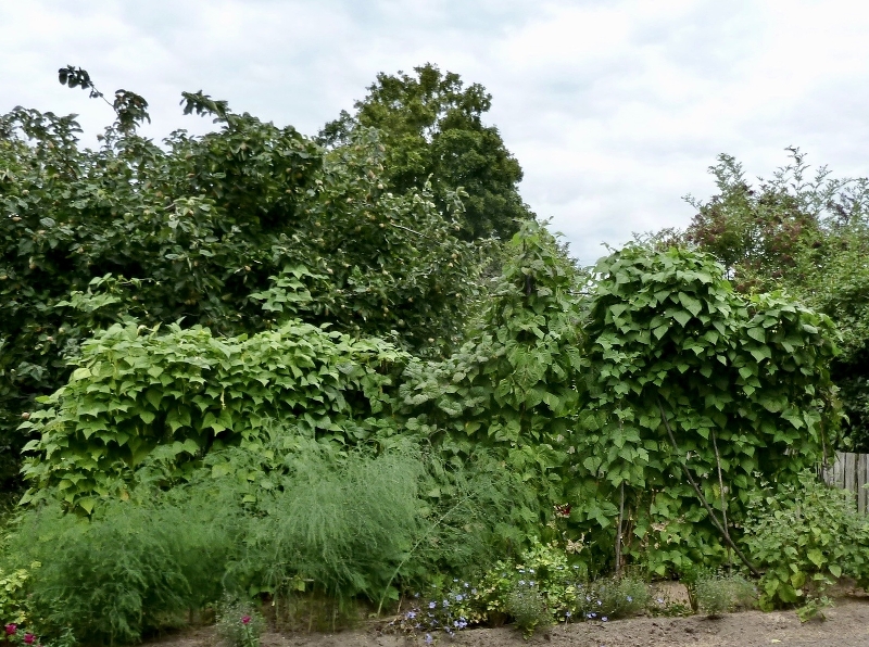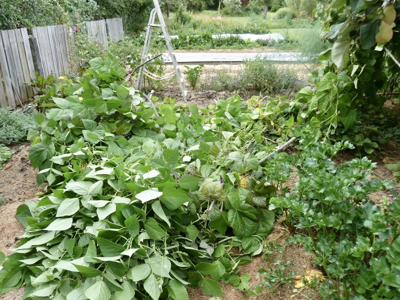 Ich glaube, ich werde im nächsten Jahr mehr Stangenbohnen anbauen . Die Buschbohnen bringen immer soviel Ertrag mit einem mal und dann ist plötzlich Schluss. Und mein Rücken mag das pflücken soweit unten gar nicht mehr gern. :-\