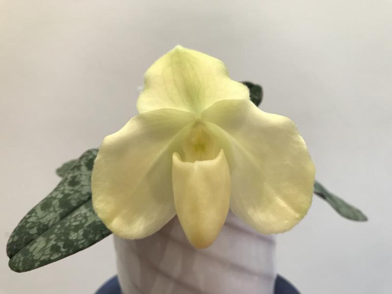 Neu in meiner kleinen Sammlung ist Paphiopedilum wenshanense f. album in einem schönen Zitronengelb, die Blüte öffnet sich aber gerade, daher kann sich die Form noch etwas ändern.
