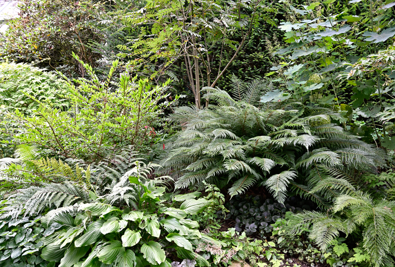 'Helena' ist der Polystichum setiferum in der Mitte. Der Wendeltreppenfarn ist in #4266 zu sehen (bei 'Helena' unten schon mit im Bild).