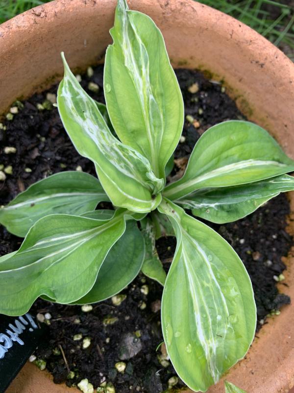 So sieht meine Hosta ' Silver Threads and Golden Needles ' aus.