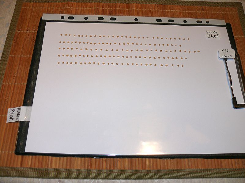 So richtig Arbeit macht jetzt die Samengewinnung. Von diesen A4-Klemmbrettern