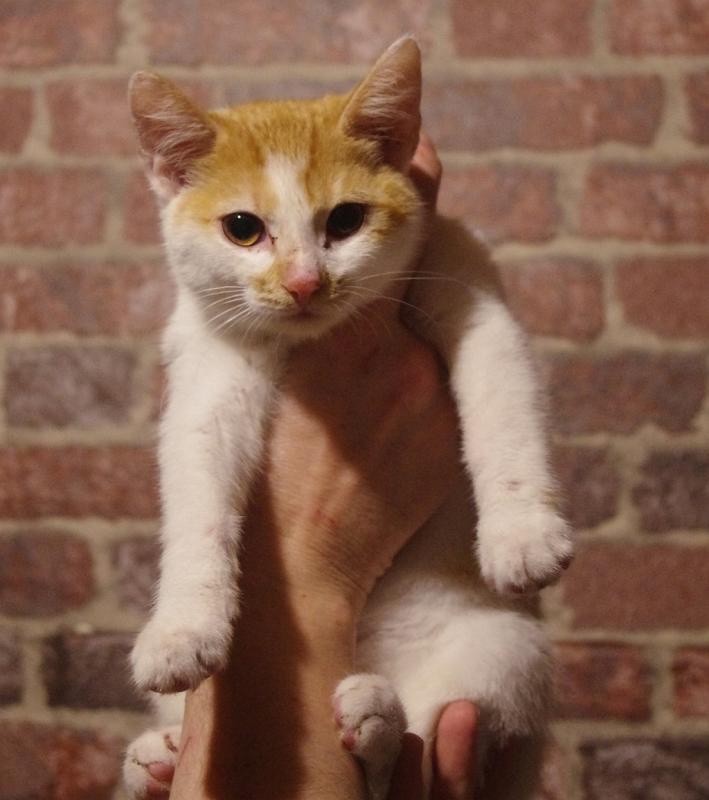 Der Kleine hat noch Durchfall, Hautpilz, Hefepilze in den Ohren und ist etwas unterernährt. Er ist ca. 2 Monate alt, aber kastriert.