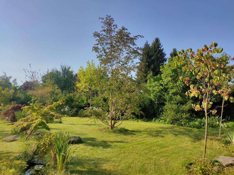 Blick auf die Wiese mit Stewartia monadelpha