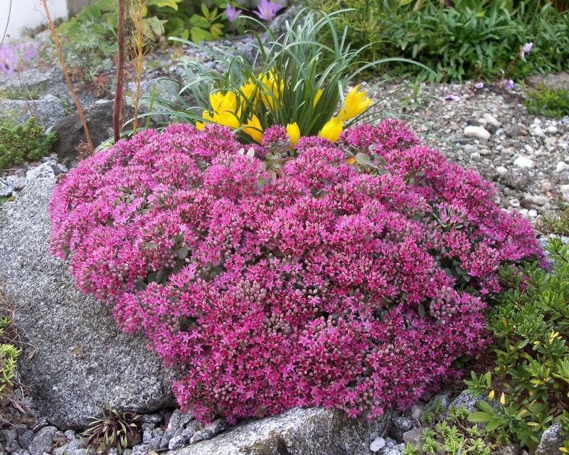 Sieht wunderbar aus. Zumal im Steingarten zu dieser Zeit relativ wenig so spektakulär blüht, wie dein Sedum... toll. 👍