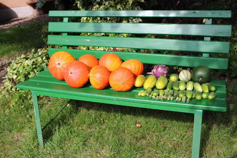 Dazu kommt das aktuelle Standardprogramm: Zucchini, Tomaten, Buschbohnen und Küchenkräuter. Äpfel, Zwetschgen und Pflaumen werden ja eher im Obstbereich gelistet (obwohl hier eigene Threads zu Melonen existieren, die ich auch als Obst ansehe... ;))