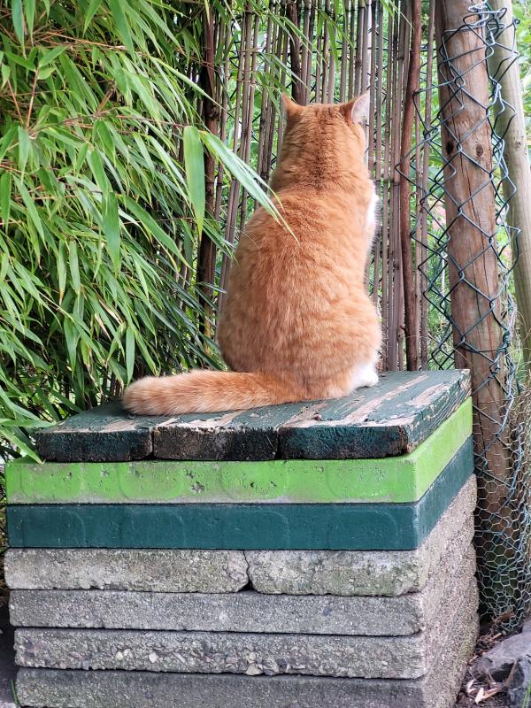 Auch eine Katz kann bei dem Lärm nicht schlafen und so nahm sie den Nachbargarten streng ins Visier....