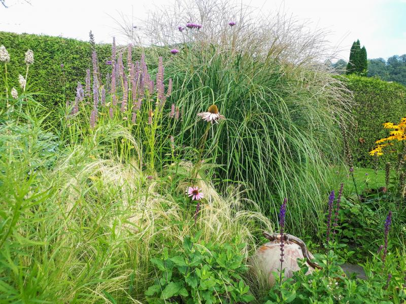 Ja, die Gräser sind nun absolutes Highlight und bringen Leichtigkeit in den fast schon herbstlich wirkenden Dschungel. Ein Rundgang im Morgenlicht von der Terrasse aus. ;)