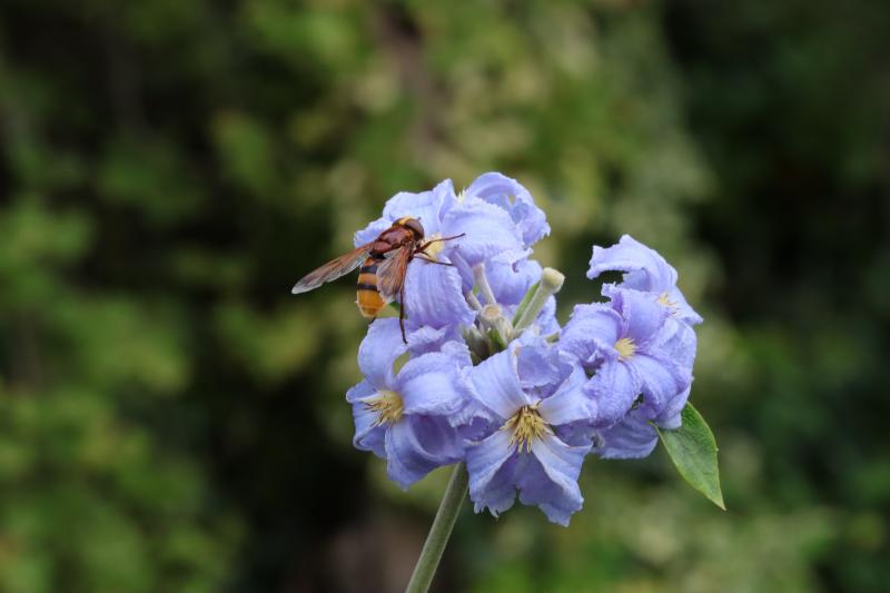 Das sieht nach einer Hornissenschwebfliege aus. Wir nennen die „Dicknase“.