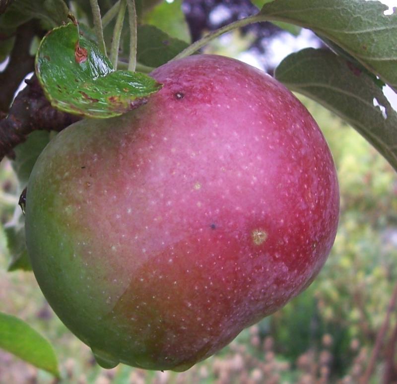 einer wurde bis Anfang Oktober am Baum belassen und wurde zu einem makellosen , großen,knackigen, süßen,spritzig saftigem Tafelapfel mit säuerlichem Abgang, feinzelligem Fruchtfleisch und dünner Schale .