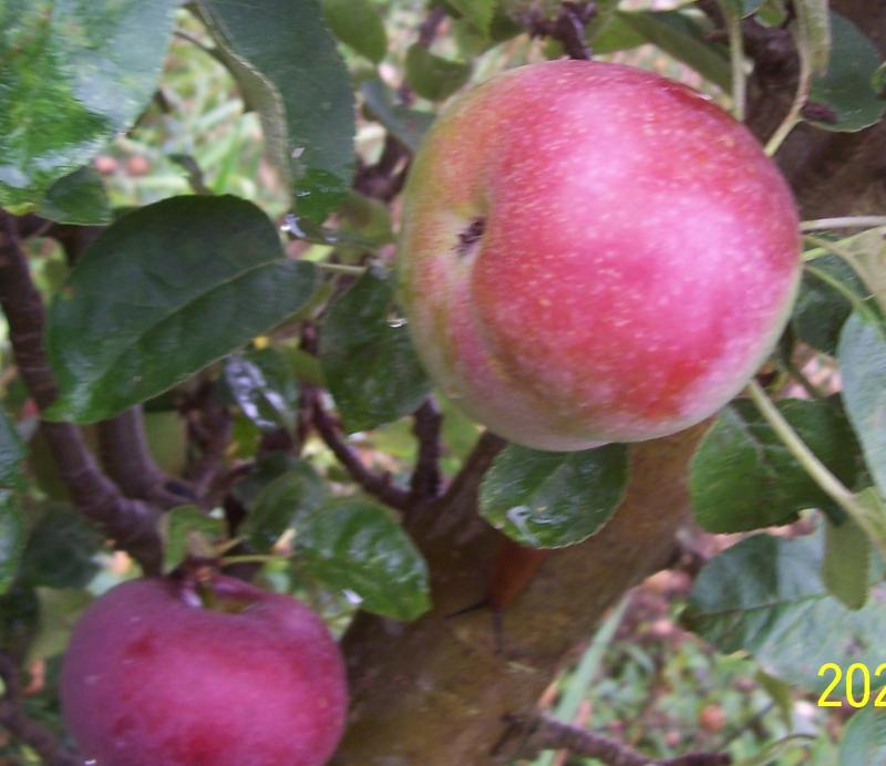 Der sieht mal ganz anderst aus als meiner. Hier fallen seit 10 Tagen die ersten Äpfel und die Schnecken lieben diese Sorte, sind innerhalb zwei Tagen komplett ausgehölt bis zum Kerngehäuse. Ein Teil vom noch nicht gefressenen Fallobst habe ich schon verkostet, hat ein feines Himbeerarom.