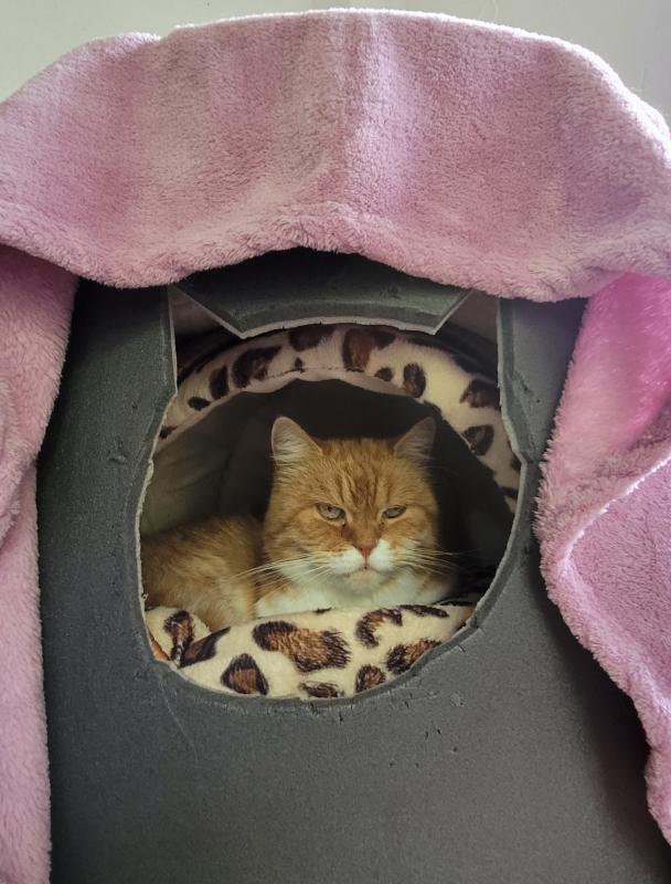 Sie schaut nicht so, als ob sie die Bastelarbeit richtig zu würdigen wüsste. Vermutlich denkt sie, dass Dosine es so ungemütlich kalt hat werden lassen, nur damit sie (Lotti) endlich die Höhle benutzt.