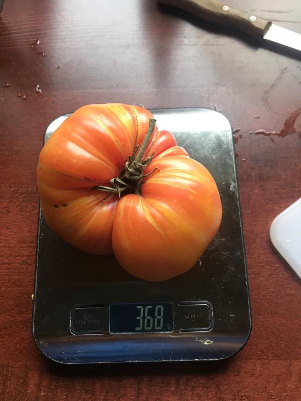 Die geht glaube ich auch ohne Obduktion und Narben als Tomate durch. Fast 600 g und nein, ich habe keine kleinen Hände