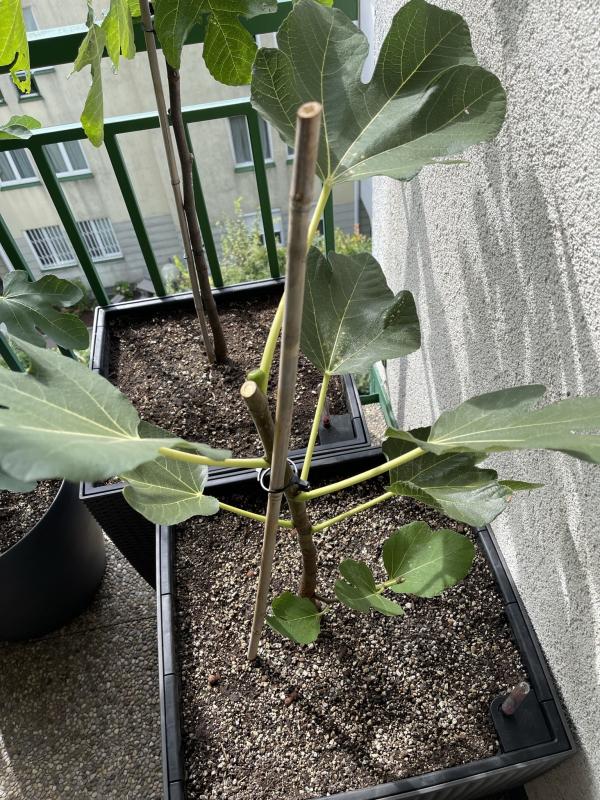 Hoffe auf 1. Feigen nächstes Jahr. Die 1 am Foto wird sicher nichts mehr heuer. Hatte 5 Feigen oberhalb, die den Stecklingen zum Opfer gefallen sind.