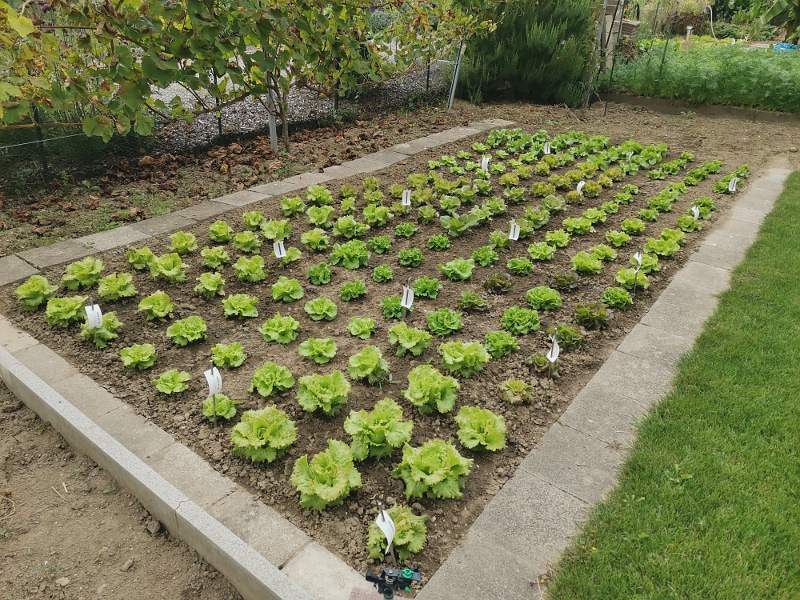 Hier ists ähnlich, aber nichts abgedeckt. Nebenbei bemerkt: die Kulturführung ist verbesserungswürdig, Disteln sollten in Salat nicht so groß werden und das optimale Hackfenster fürs Unkraut wurde schon verpasst.