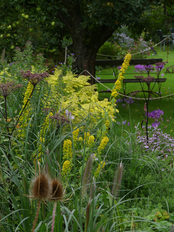 Gefällt mir sehr gut, Dein Garten, Mottischa - etwas wild , ein bißchen wuselig, und die Gräser und Stauden durchweben sich zu bunten und