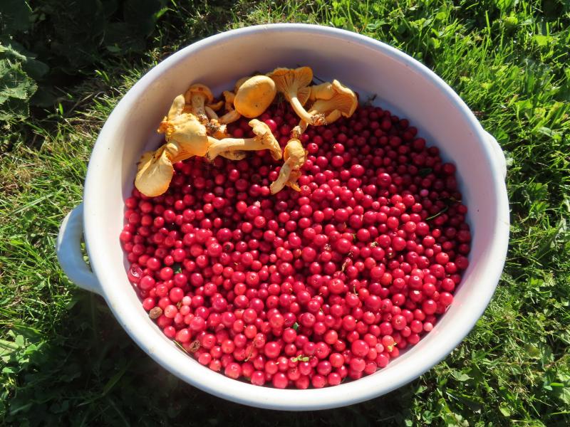 Nachdem die alten Ribislbüsche (rot und schwarz) in den letzten trockenen Sommern immer weniger wurden und deshalb stark zurückgeschnitten worden waren, haben sie heuer wieder mal ordentlich Früchte getragen. Und die Himbeeren haben Rose gespielt - entweder sich bis zum Boden gebogen oder Anstalten zum Klettern gemacht. Dazu jede Menge Heidelbeeren im Wald...