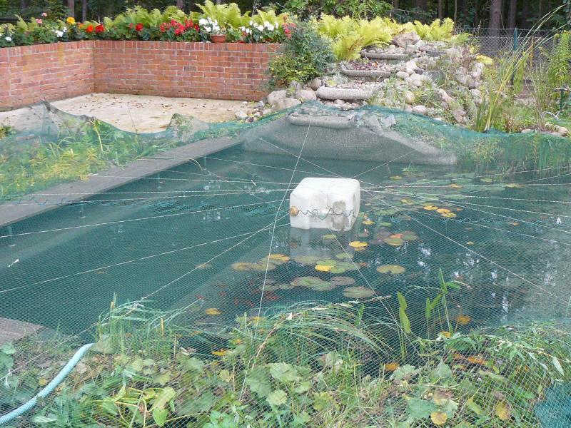 Den Teich mit einem neuem Teichnetz abgedeckt