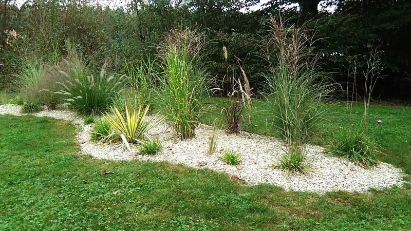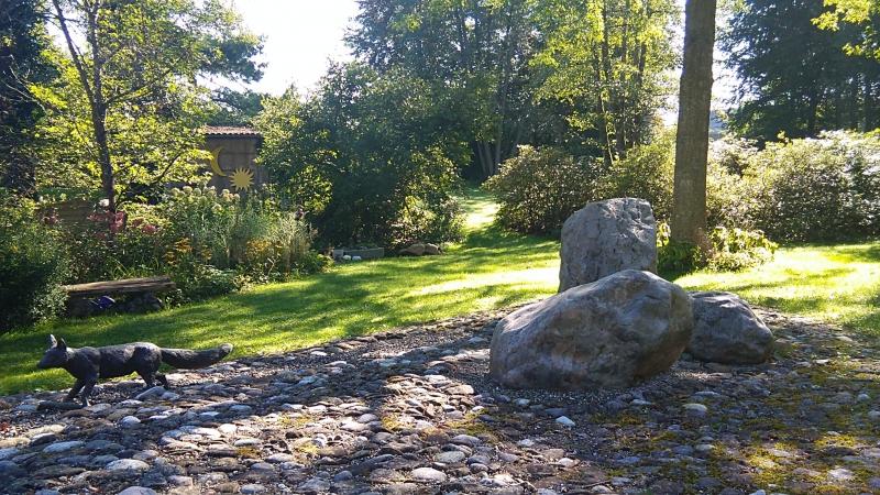 Es war wieder sehr schön, durch Deinen Garten zu streifen. Mir gefällt besonders die Großzügigkeit, mit der er angelegt worden ist. Diese monochromen Flächen strahlen eine Ruhe aus, die ich sehr mag. Von den Wetterkapriolen in diesem Jahr ist nichts mehr zu merken. Hast Du eigentlich wieder neue Kunstwerke gestaltet?