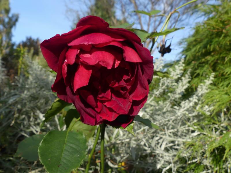 'Wild Eve' lockere und robuste Strauchrose von Austin.Im Gegensatz zu HMF empfinde ich den Duft recht deutlich ,würzig und myrrheartig.Laub jetzt im Herbst schon etwas mitgenommen.Bild