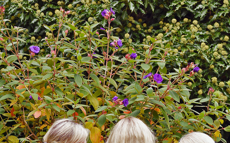 ... fast kalligrafische Details. Auch die Blätter fühlen sich traumhaft an. Die Tibouchina steht gegenüber der brasilianischen Nachbarin Gunnera, muss aber im Gegensatz zu der nicht draußen überwintert werden. Sie hat ca. 20 Jahre, mal schaun, wie lange sie noch durchhält. Es gibt einfachere Gehölze...
