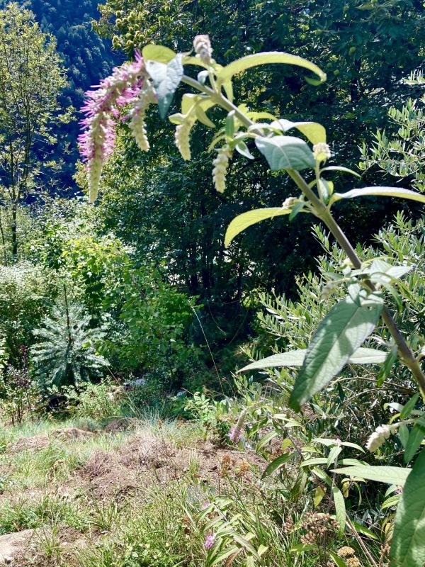 Rostrinucula dependens, die 'Weinende Buddleja', blüht gerade sehr schön.