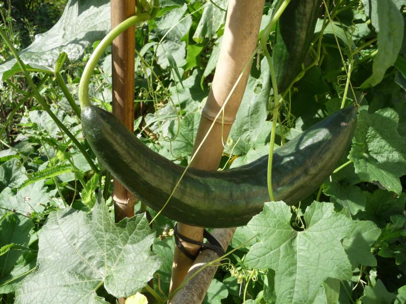 Der unbehaarte Stengel und die Form, das könnten indische Flaschenkürbisse sein, die heissen dort Lauki, Ghiya, Dudhi. Unter "Bottle gourd" findest du viele Bilder davon.