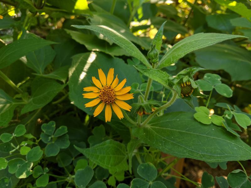 Ich bin ganz fasziniert wie unermüdlich die Yacon dieses Jahr blüht. Yacon hatte ich schon öfters im Anbau, aber noch nie hat eine davon geblüht. Die dieses Jahr kommt aus dem Blühen gar nicht heraus, ständig kommen neue Blüten nach.