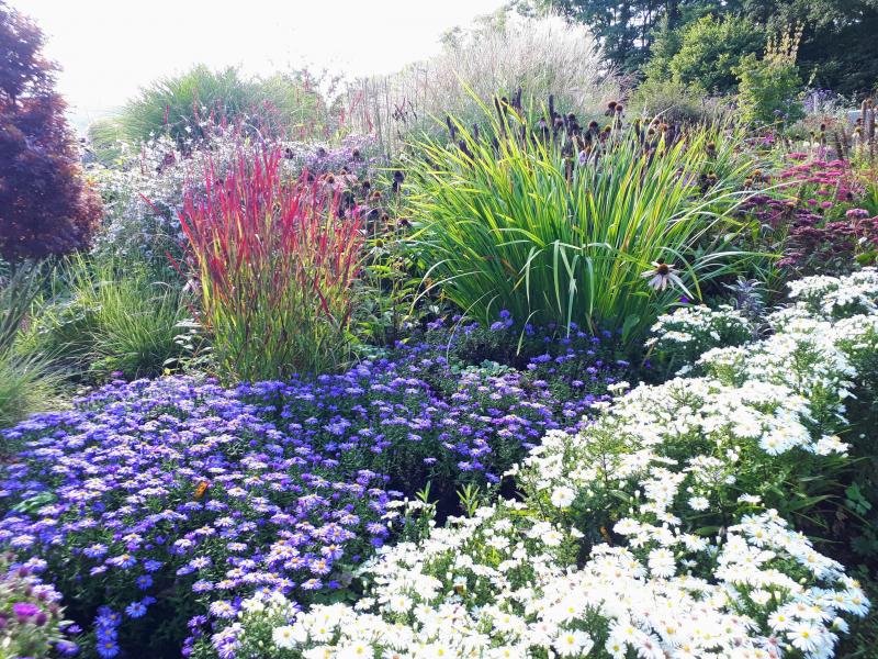Flächenpflanzung mit 'Prof.A.Kippenberg' in Blau und 'Niobe' in Weiß. :D
