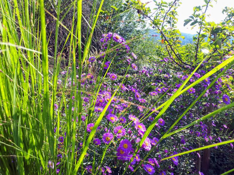 Sehr üppig, Deine Astern, Buddelkönigin. In unseren kleinen Beeten muss ich mit den Glattblatt-Astern sehr aufpassen, dass sie nicht in Nachbarnstauden mit dichten Rhizomen einwandern. Solange ich die herumstreichenden Rhizome locker zurücknehmen und wegreißen kann, sind sie keine Gefahr.