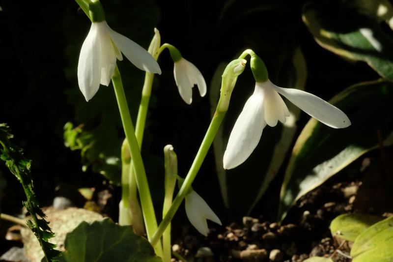 Galanthus 'Weisse Adventsperlen' startet hier auch durch.