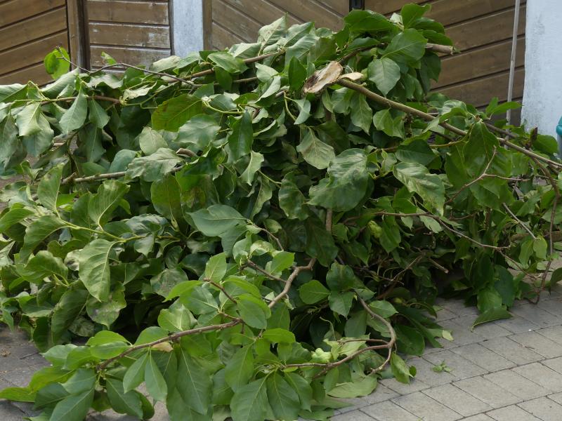 Der Nachteil der diesjährigen wachstumfördernden Witterung: Häckselarbeit, auf die ich gerne verzichtet hätte. :'( (An einer Magnolie war ein etwas größerer Ast abgebrochen)
