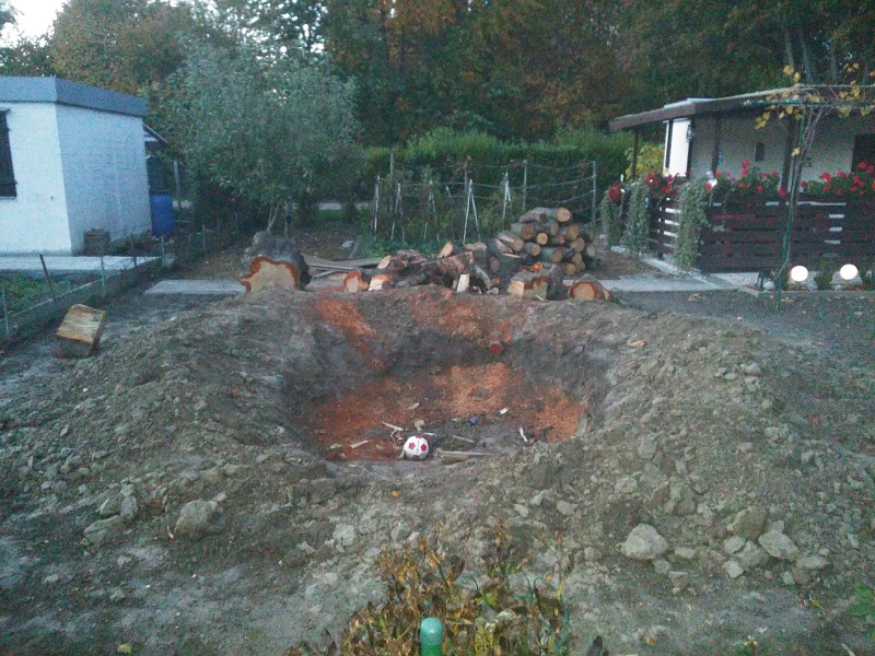 Die anderthalb Ster gespaltenes Holz direkt hinterm Krater waren nur die oberen Wurzeln. Die wurden mit der Axt gespalten um sie tragen und aus dem Loch heben zu können.