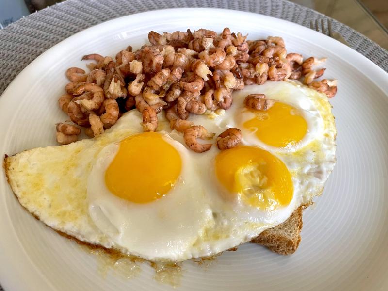 heute toast mit spiegelei und meermaden, selbstgepult 8)