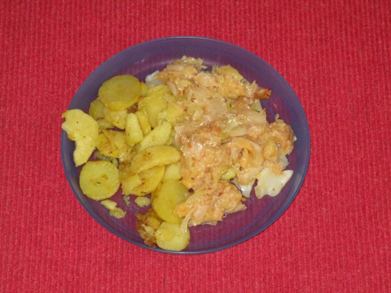 Heute gab es was aus der Reihe "... ähm ... interessant": Bratkartoffeln mit Quitten-Spitzkohl (mit Butter, Kümmel, Salz gebraten). Das Mischungsverhältnis stimmte nicht ganz ::), dadurch war es sehr säuerlich. Die Takis schaufelten trotzdem rein - entweder schmeckte es ihnen oder sie hatten einfach Kohldampf.