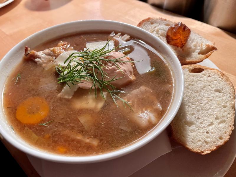 Hier saisonal: Rehragout in Wurzelrahmsauce mit Waldviertler Knödln und Preiselbeeren, dazu ein halbsüßer Sturm. Es war unglaublich gut :)