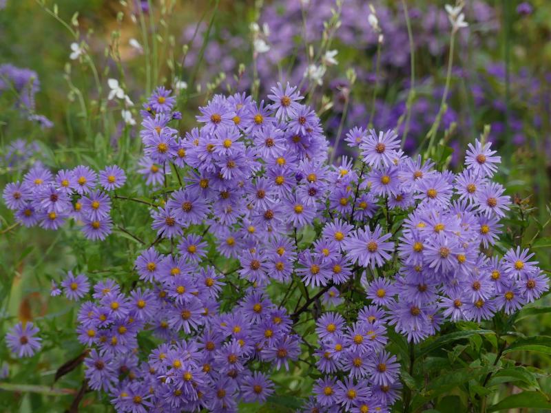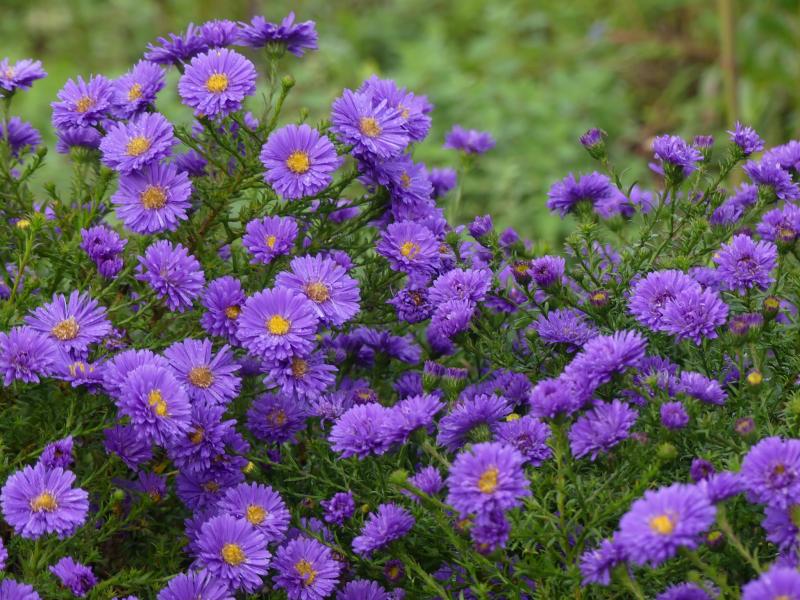 Von dieser ehemals gekauften Herbstaster weiß ich leider keinen Namen.Sie ist schon sehr blau ,hat ganz kleines Laub und wächst immer schön kompakt und zusammenhängend.