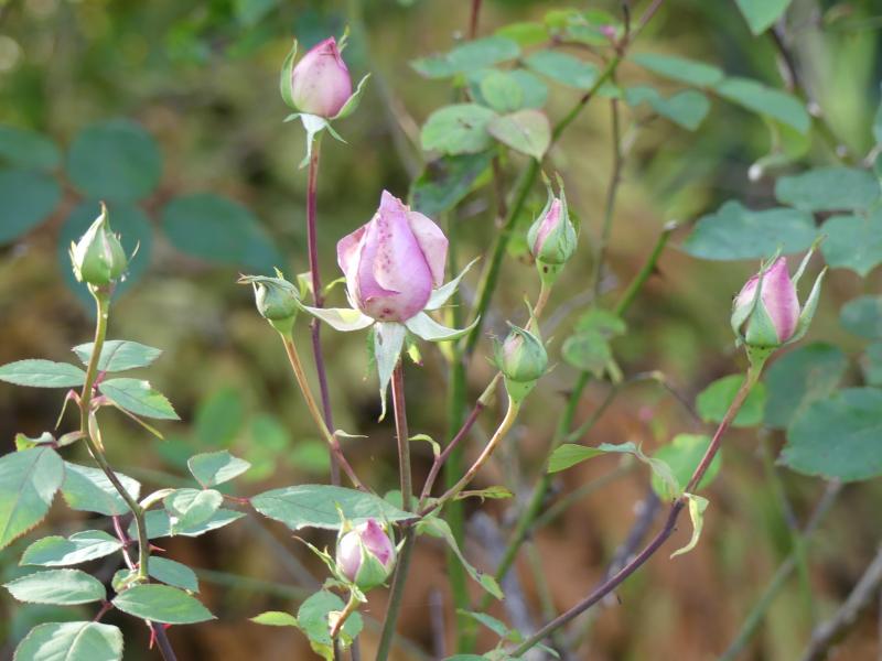 Und das sind die Knospen dazu in Warteschlange. ;)Im oberen Bereich sieht man ihre vielen Stacheln nicht.Sie mutet vom Wuchs ziemlich teehybridig an.