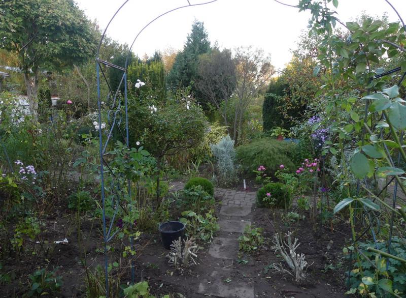 Hier in die andere Richtung.Vorne hatte ich ja schon für zwei Kugeln als Ersatz Thuja 'Danica' gesetzt.Stauden in den beeten auch gleich runtergeschnitten und entkrautet.Jetzt muss ich nur noch den Weg sauber machen und abwarten. ::)