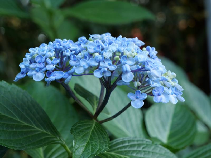 @partisanengärtner: ich sehe da nichts Außergewöhnliches. Das ist vermutlich H. serrata 'Blue Bird' o.ä. Auch unsere Exemplare zeigen dieses Verhalten. Die blaue Farbe bei Hortensien rührt von einem Al-Komplex des Delphinidins her. Je nach pH-Wert und Verfügbarkeit können auch andere Metallionen eingebaut werden und so Farben von Rot über Violett bis Blau entstehen.