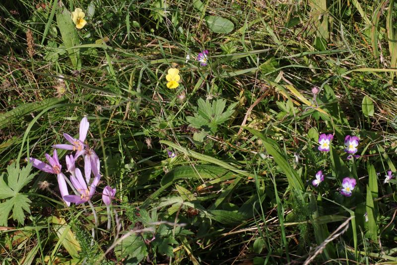 Nicht im Garten, sondern in einem Naturschutzgebiet blühen z.Zt. Herbstzeitlose und Galmeiveilchen.