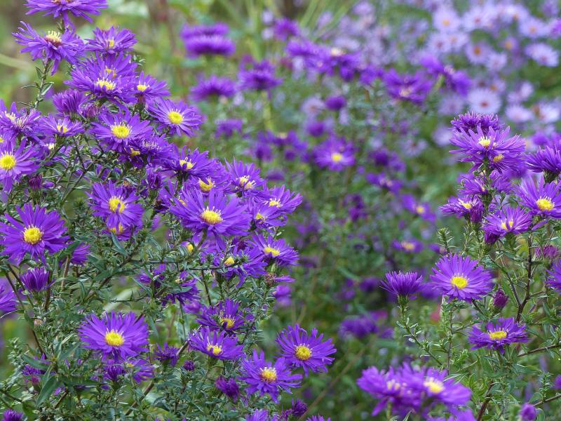 Ziemlich hochwüchsig, aber mit den richtigen Partnern durchaus standfest ist Aster pringlei 'Pink Star' – eine besonders schöne Myrthenaster. :D
