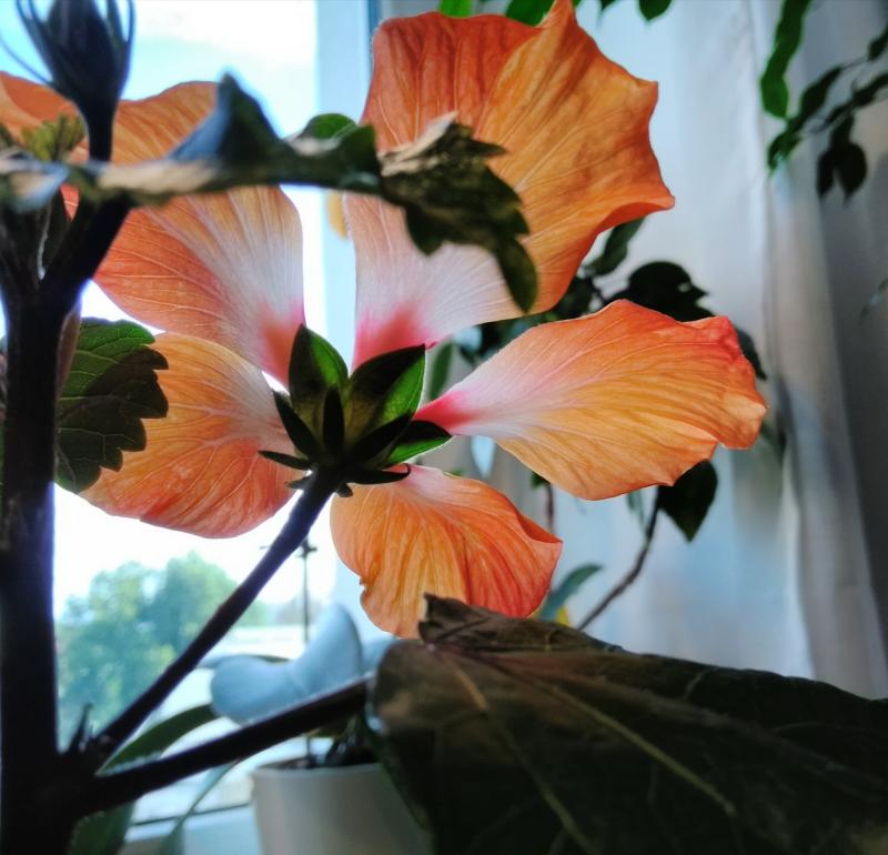 Unser Korallenhibiskus, ein Geschenk von Freunden, der uns etliche Jahre als kräftiges Bäumchen viel Freude bereitet hat, scheint sich zu verabschieden.