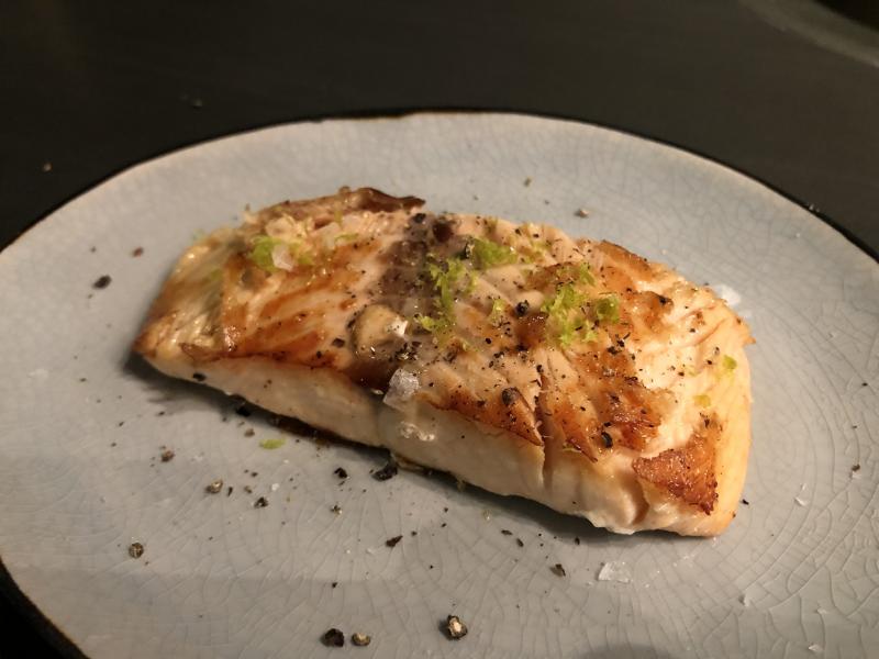 Der Lachs bekam noch etwas Limettenabrieb und Saft. Leider zu trocken … ::)