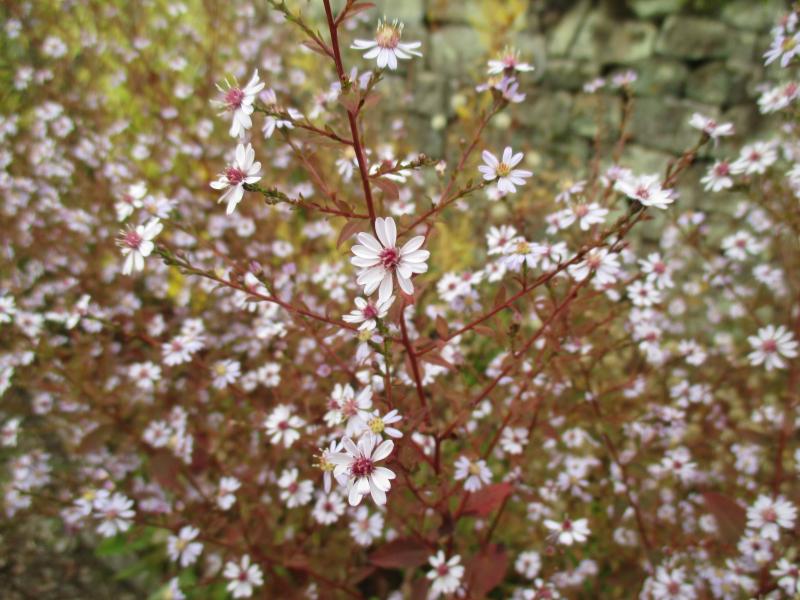 Aster lateriflorus var. horizontalis trifft am ehesten. Da stimmt alles Höhe, Blütenfarbe, Laubfärbung. 2007 hatte ich ich sie von Gaissmayer gekauft. Allerdings hatte ich sie an ganz anderer Stelle im Garten gepflanzt.