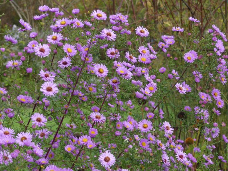 Ein Pulk der kleinen Kissenaster 'Professor Anton Kippenberg' schon etwas überreif in der Blüte.