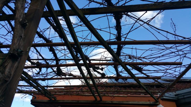 schau dir mal die fotos von meinem alten weinstock an, im hintergrund siehst du die triebe am dach liegen.