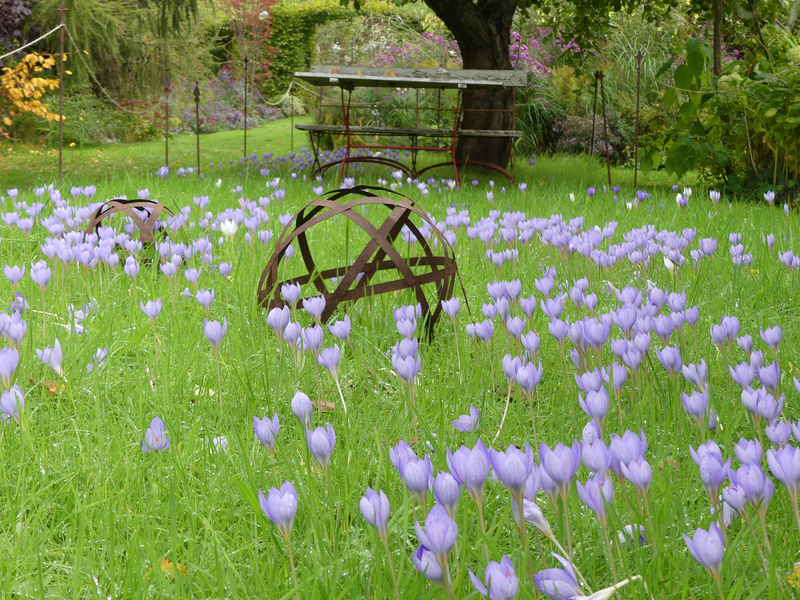 Dialog kürzlich beim Gartenbesuch: "Hast du keine Herbstkrokusse?" - "Hatte ich mal." In grauer Vorzeit hatte ich den Vorgarten und eine zweite Gartenecke kräftig herbstkrokusgezwiebelt, doch nachdem beide Areale gründlich umgewühlt wurden, glaubte ich die Herbstkrokusse verloren.